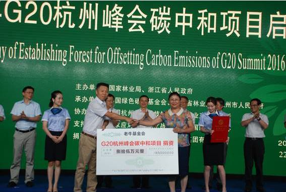 G20 Hangzhou Summit is calculated to emit about 6,674 t CO2e, which is neutralized by planting forest donated by Laoniu Fundation and Wanma united holding Group, Co., Ltd. in Taihuyuan Town, Lin’an City, Zhejiang Province to realize the target of zero emission.