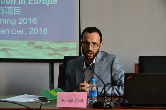 Roland Joebstl, the exchange scholar of Europe Environment Association, was giving lectures on Europe Resource Policy for CECF and related entities