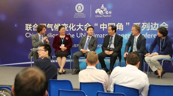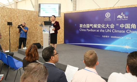 November 9, China Pavilion at the UN Climate Change in Marrakech kicks off its first side event. The event with the theme of “Ecological Management Improves Human Well-being”, is co-organized by Department of Climate Change of China's National Development and Reform Commission (NDRC) and China Green Carbon Foundation (CGCF), attracting nearly one hundred representatives from international organizations and more than 20 countries including America, Britain, France, Germany, Russia, Norway, Malawi, Colombia, Mexico, Spain, Ukraine, Indonesia, China and Morocco. Speakers at home and abroad, focusing on the core theme of “Ecological Management Improves Human Well-being”, talk about taking pragmatic measures such as policy guidance, mechanism innovation, scientific research, public education, community participation to mobilize and guide various social forces, actively participate regional ecological management, and strive to achieve the harmonious coexistence between man and nature. The side event is presided over by Li Nuyun, Deputy Director of Climate Office, State Forestry Administration and Executive Vice President of CGCF and John O'Neill from the University of California, San Diego.